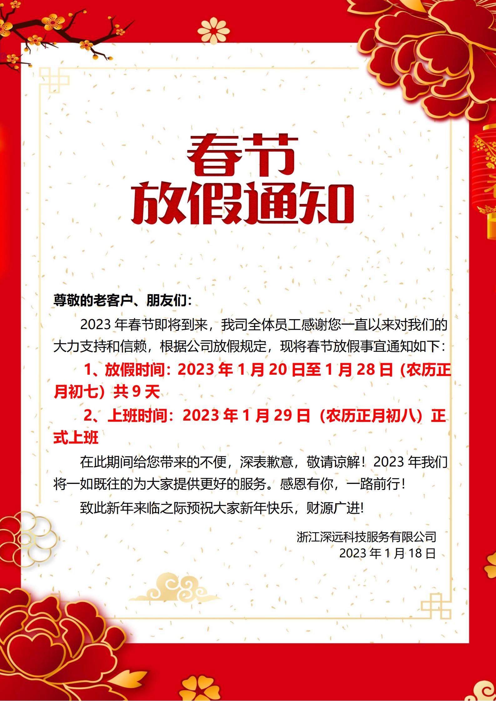 春节放假通知