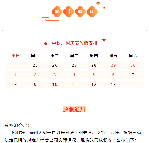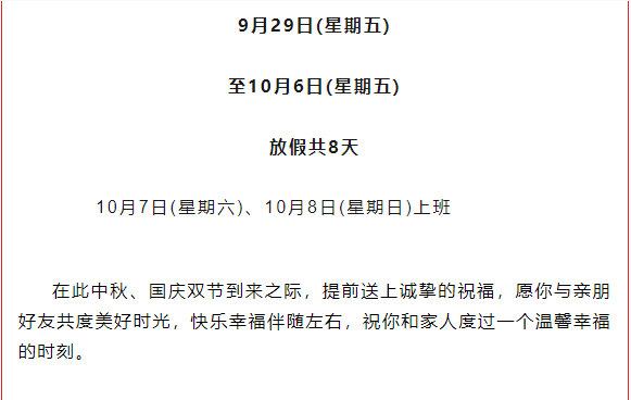 中秋、国庆放假通知