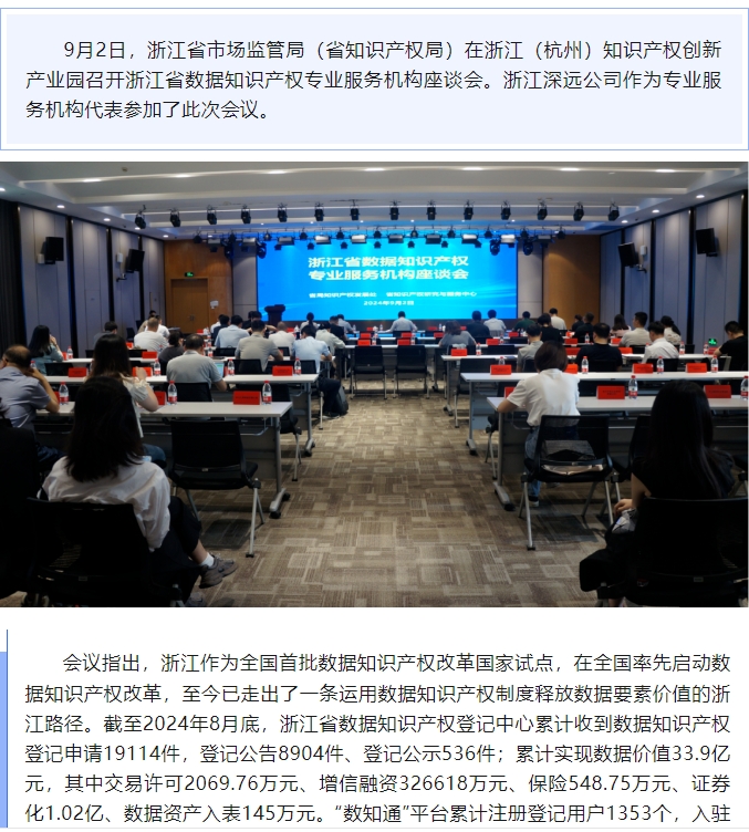 浙江深远科技服务有限公司参加浙江省数据知识产权专业服务机构座谈会